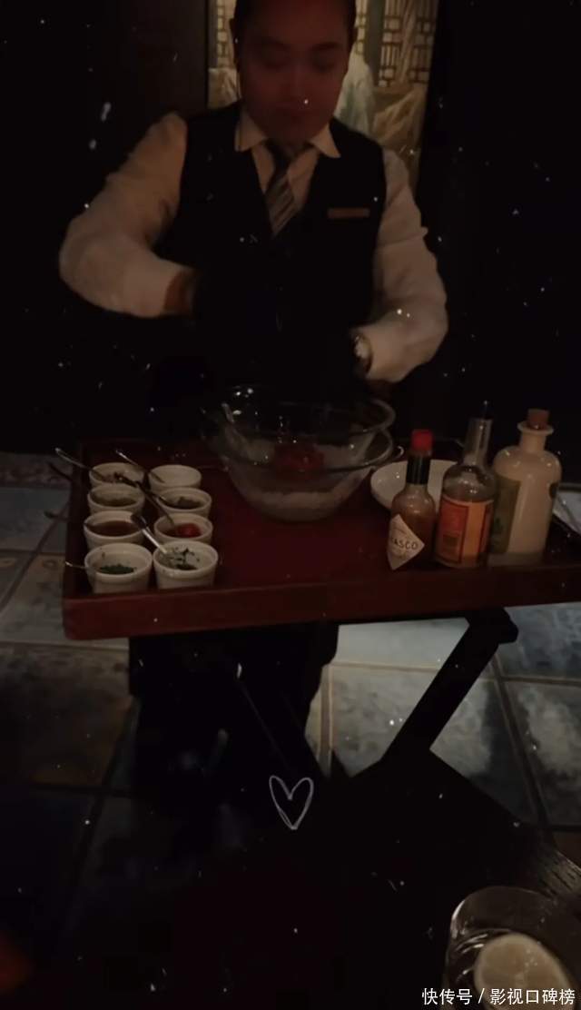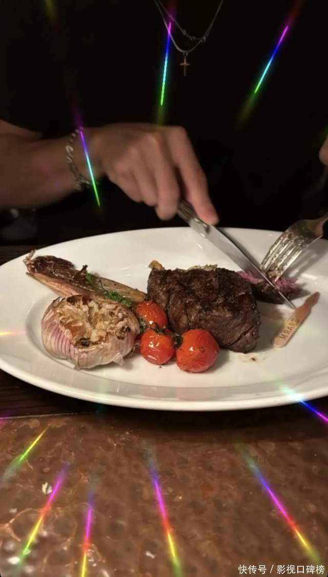 母子俩一起吃牛排,店内环境昏暗,颇有氛围,还有专人来现场烹饪食物。不知道她的次子与小儿子是否一起为哥哥庆祝18岁生日。