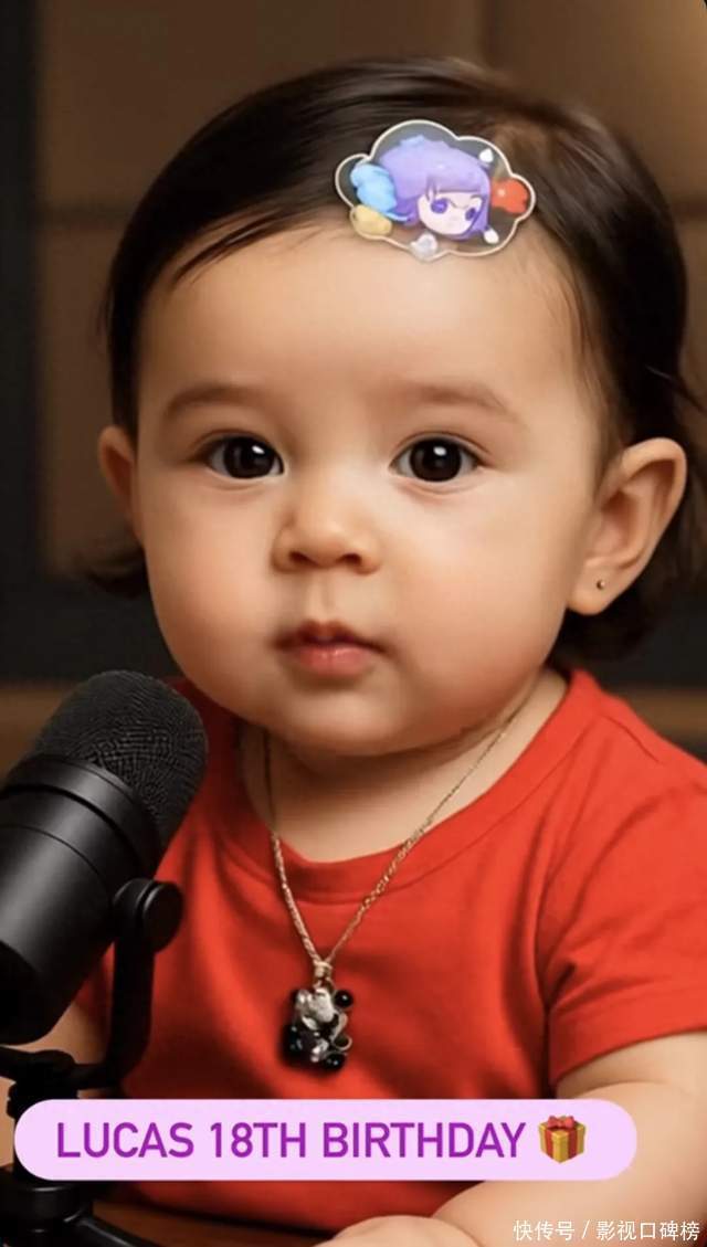 张柏芝还用AI制作了一张Lucas的动态照片,白白胖胖的,满身肉嘟嘟,穿着红色T恤,戴着耳钉,脖子上戴着项链,前面放着话筒。照片中还写 :Lucas 18岁生日快乐。张柏芝作为妈妈,对儿子们真得很用心。