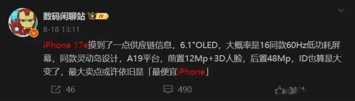 其中,作为新一代 最便宜 iPhone 的 iPhone 17e,格外受网友关注。