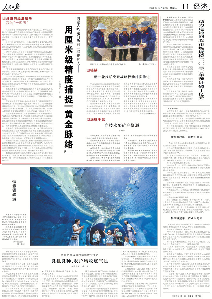 矿业是经济社会发展的重要基础产业,矿产资源勘查开发事关国计民生和国家安全。“十四五”时期,国家实施了新一轮找矿突破战略行动,累计投入资金近4500亿元,取得一批重大成果。全面摸清有查明资源储量的163种矿产的数量、分布和开发利用状况,油气、铜、锂等战略性矿产资源勘查开发取得重大突破。